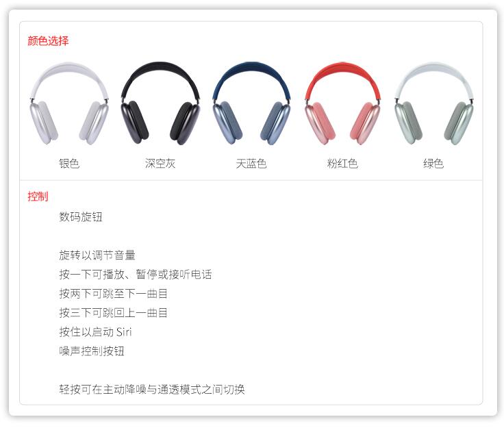 Apple/蘋果 AirPods Max 無線藍(lán)牙耳機(jī) airpodsmax 頭戴式降噪